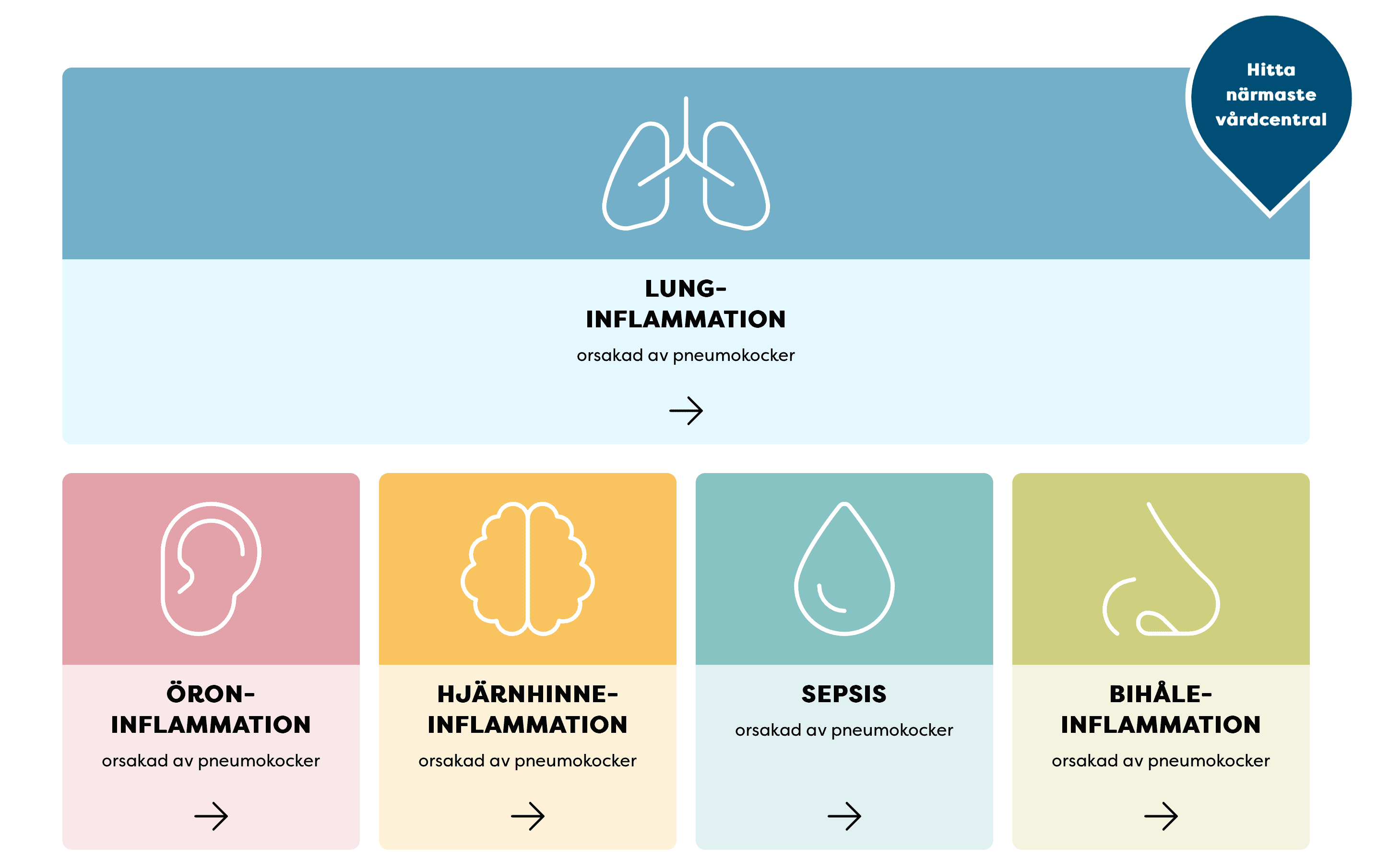 På pneumo.se finns svar på frågor, fördjupad information kring pneumokocker och vilka som är i riskgrupp, men även smarta funktioner som ”hitta närmsta vårdcentral”