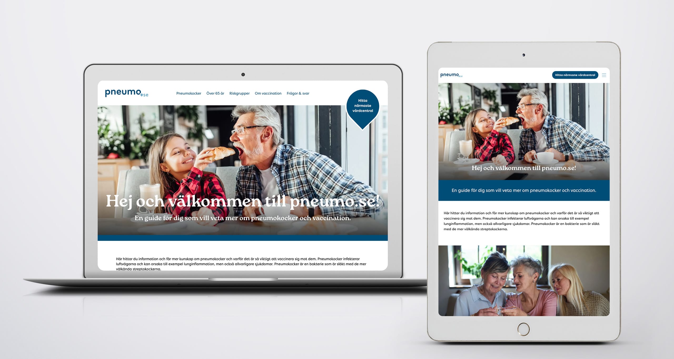 MSD gav oss uppdraget att öka kunskapen och kännedomen om pneumokockvaccination. Förutom en ny kommunikationsstrategi, lanseringskampanjer och andra marknadsföringsåtgärder, så har vi utvecklat framtidens hemsida för pneumo.se. Vi står för innehåll, sökordsoptimering och design av den nya webbplatsen, och vår partner Grafi står bakom det tekniska utvecklingsarbetet.